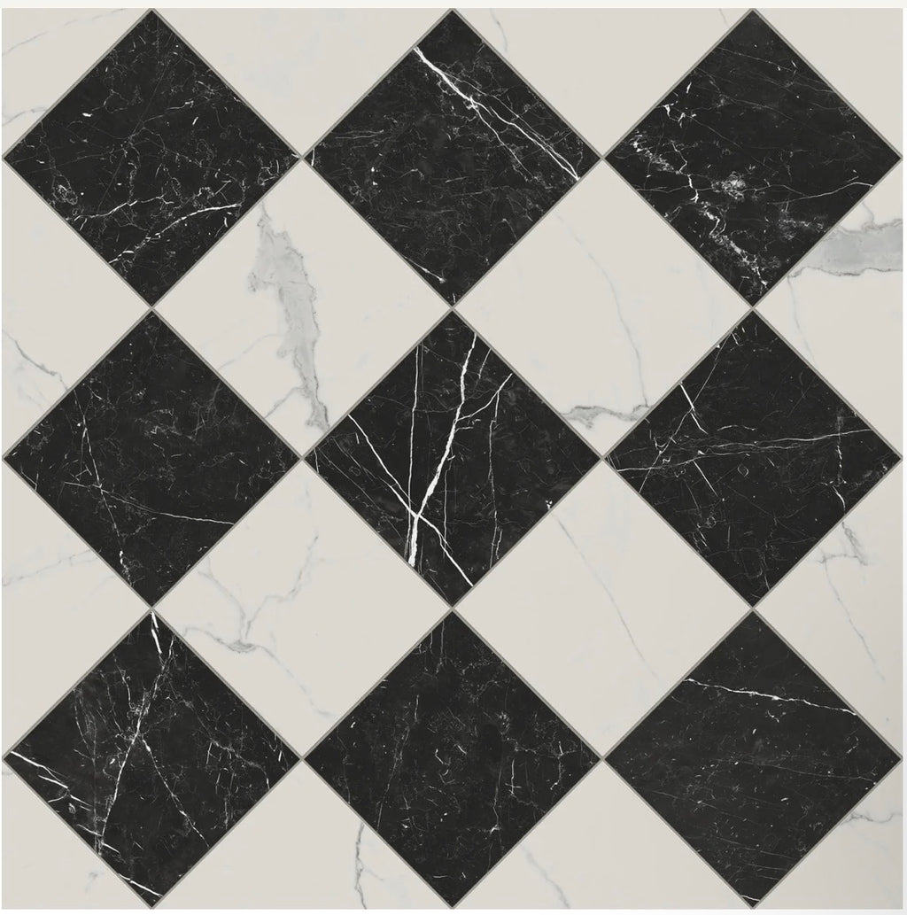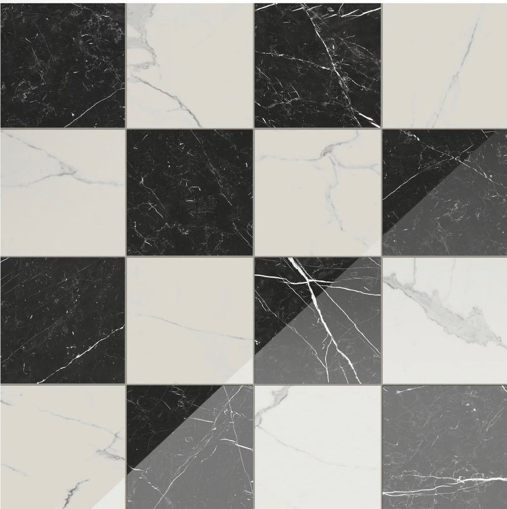 Elevate your space with this striking 12x12 checkerboard marble tile, featuring alternating polished Nero Marquina and Carrara marble in classic black and white. The smooth polished finish creates a sophisticated, contemporary look ideal for both residential and commercial applications. Each square tile showcases the natural veining and elegance of premium marble with straight edges for seamless installation. Perfect for creating dramatic accent walls, statement floors, or refined backsplashes. Minimum purchase of 50 sq. ft. required.