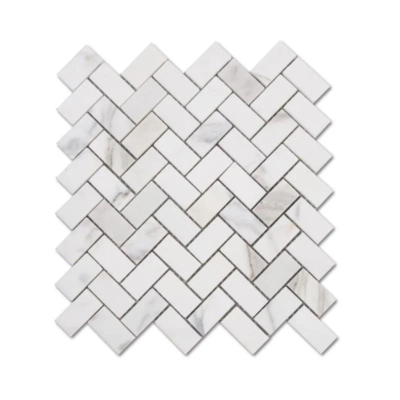 Calacatta Gold Marble 1x2 Herringbone Honed Mosaic Tile