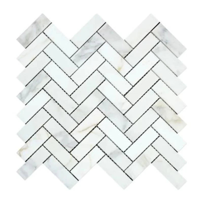 Calacatta Gold Marble 1x3 Herringbone Polished Mosaic Tile
