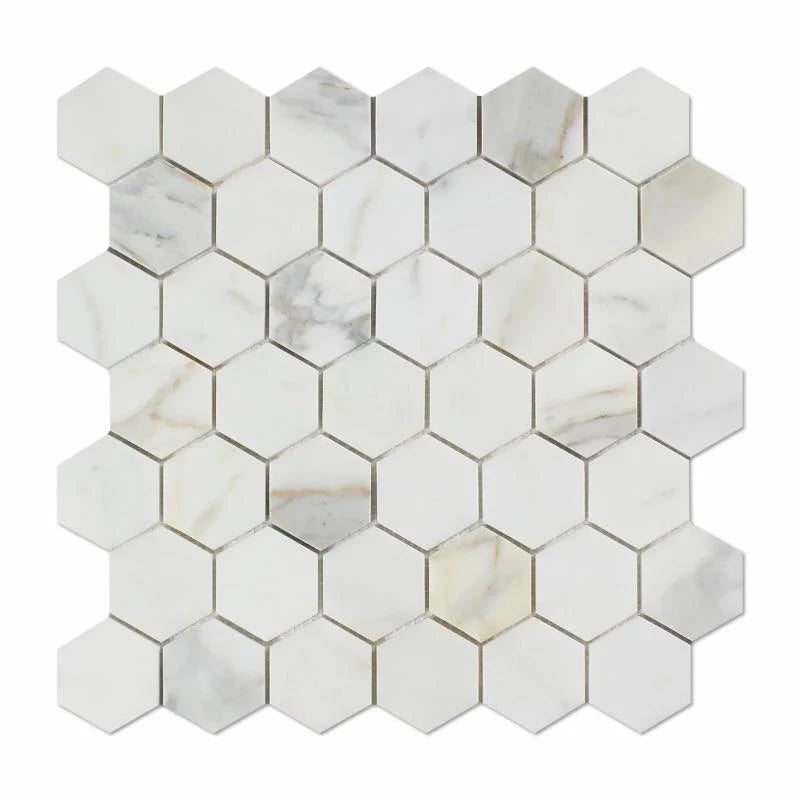 Calacatta Gold Marble 2x2 Hexagon Polished Mosaic Tile