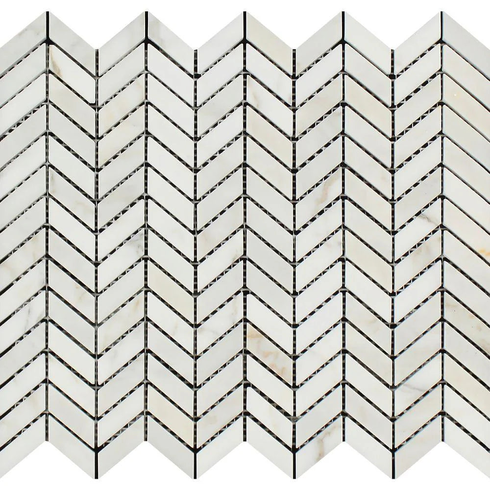 Calacatta Gold Marble Mini Chevron Polished Mosaic Tile