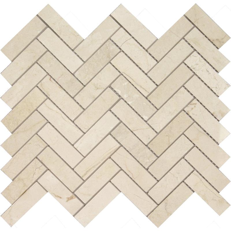 Crema Marfil Marble 1x3 Herringbone Polished Mosaic Tile