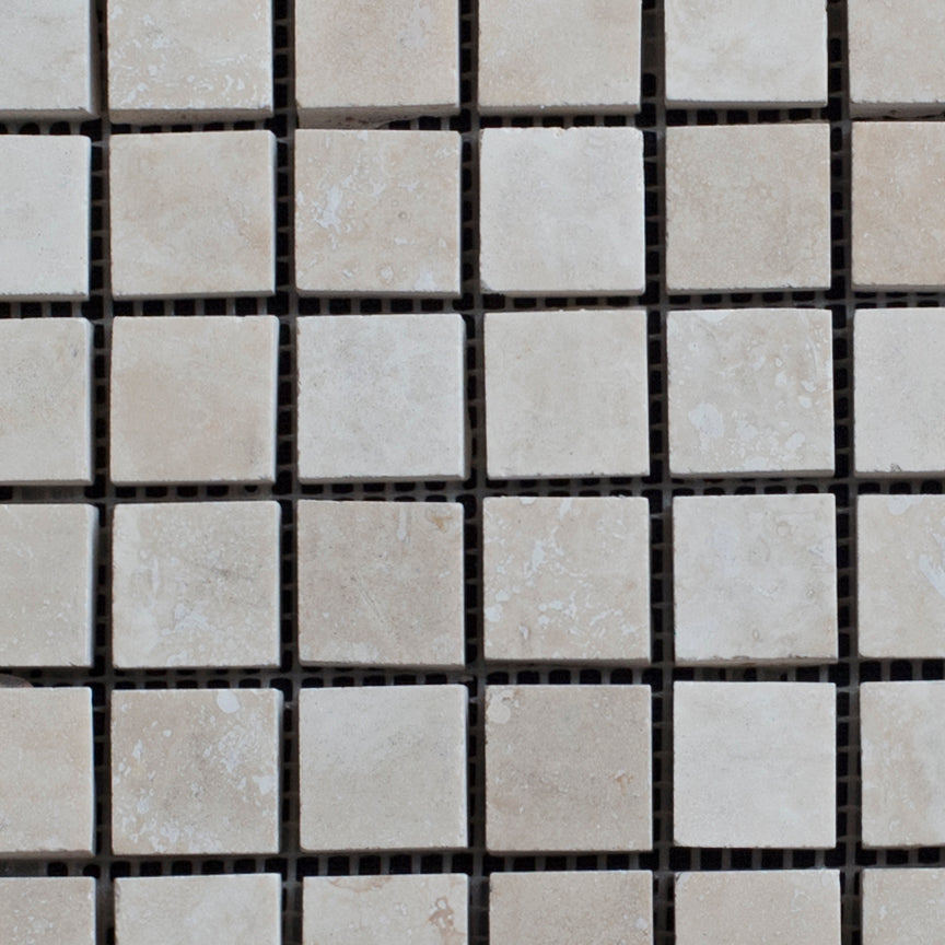 Elevate your interior spaces with our Ivory Travertine 1x1 Honed and Filled Mosaic Tile. Each piece showcases the timeless elegance of natural travertine, featuring a refined honed finish and filled surface for a smooth, sophisticated appearance. Perfect for creating stunning accent walls, backsplashes, and spa-inspired bathrooms, this mosaic tile brings warmth and luxury to kitchens, bathrooms, and poolside areas. The classic ivory tone complements any design aesthetic while the small-format mosaic layout offers versatile design possibilities. Durable and naturally beautiful, this travertine mosaic transforms ordinary spaces into refined retreats.