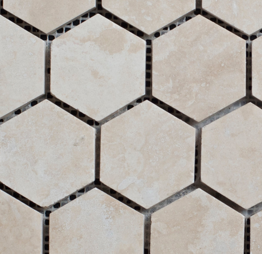 Ivory Travertine 2x2 Hexagon Honed Mosaic Tile