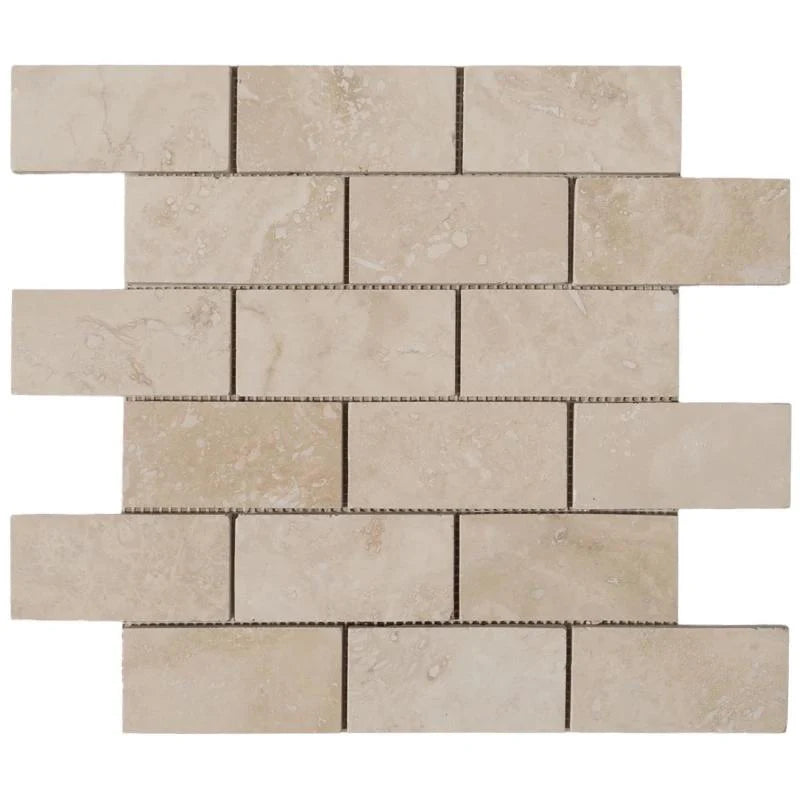 Ivory Travertine 2x4 Filled and Honed Mosaic Tile
