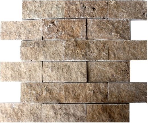Noce Travertine 2x4 Split Face Mosaic Tile