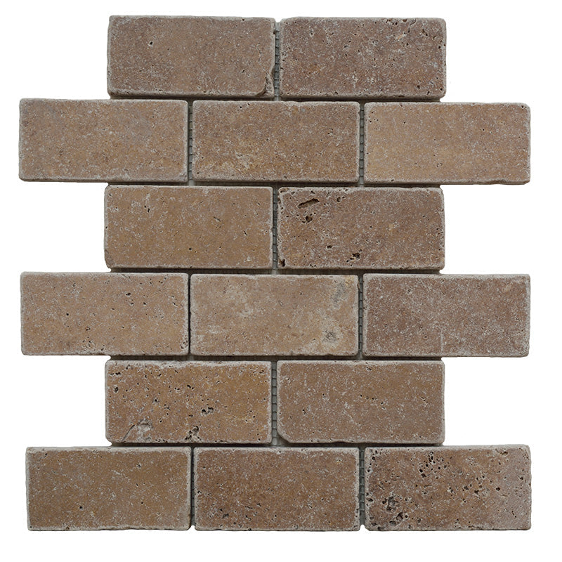 Noce Travertine 2x4 Tumbled Mosaic Tile