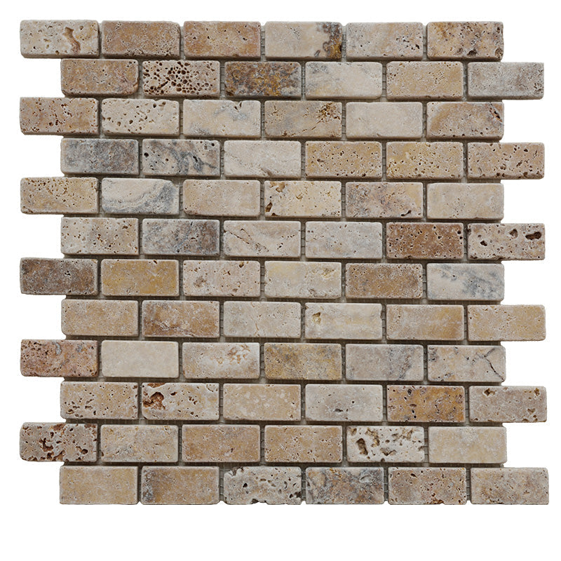 Scabos Travertine 1x2 Tumbled Mosaic Tile