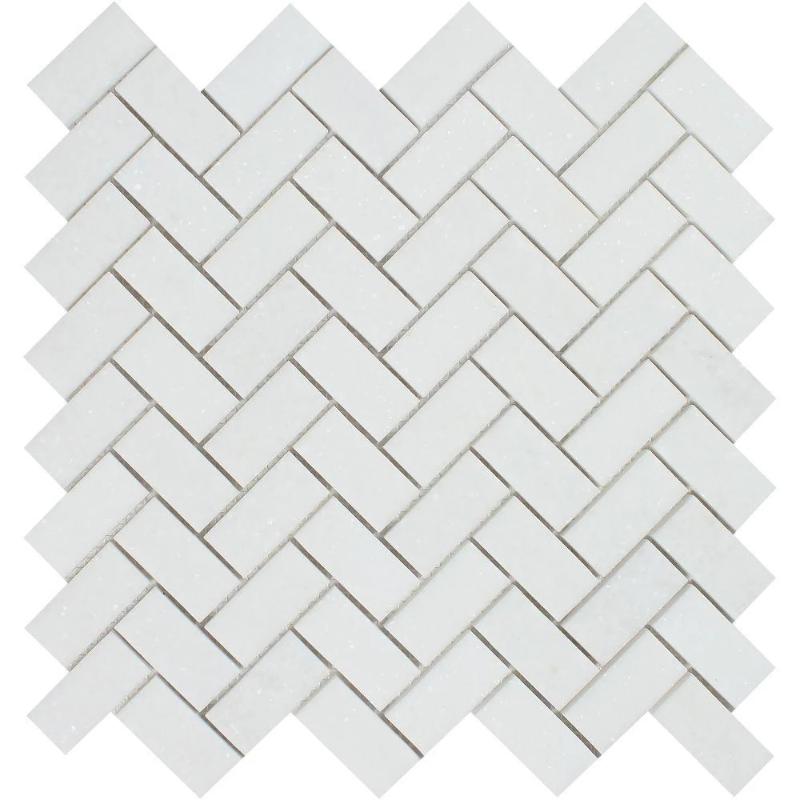 Thassos White Marble 1x2 Herringbone Polished Mosaic Tile