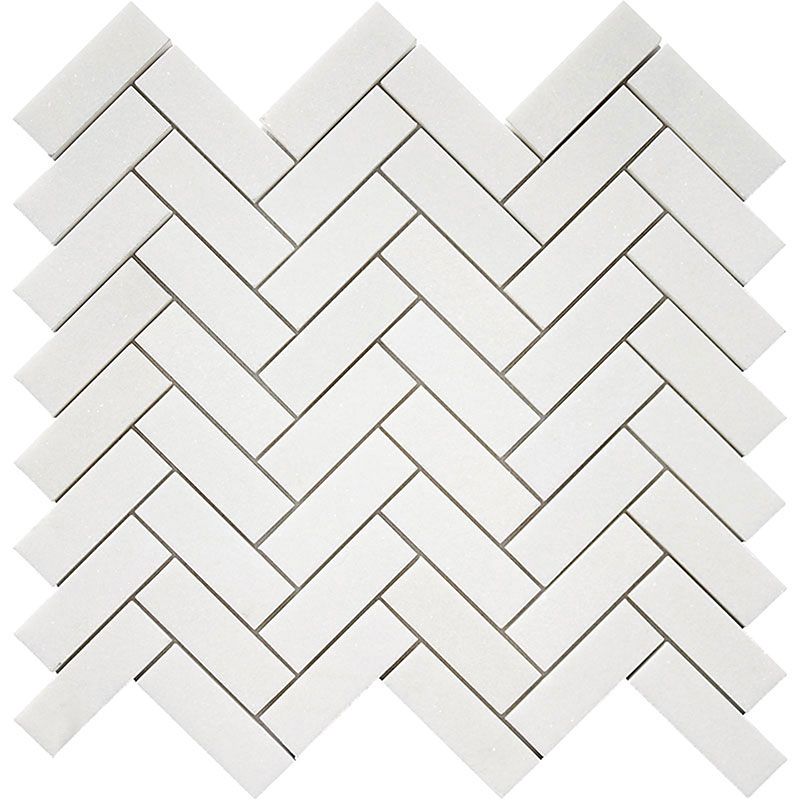 Thassos White Marble 1x3 Herringbone Polished Mosaic Tile
