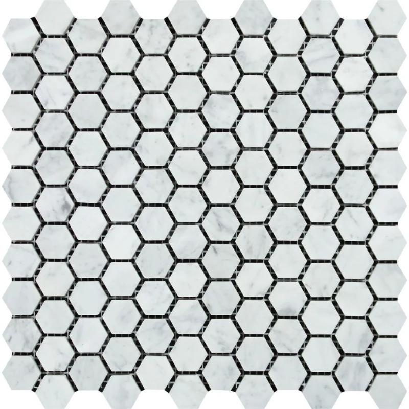 White Carrara Marble 1x1 Hexagon Polished Mosaic Tile
