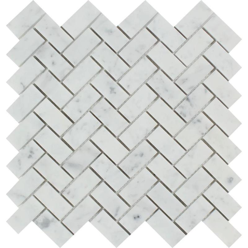 White Carrara Marble 1x2 Herringbone Polished Mosaic Tile