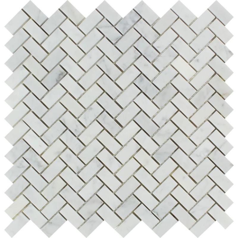 White Carrara Marble 5/8x1 1/4 Herringbone Polished Mosaic Tile