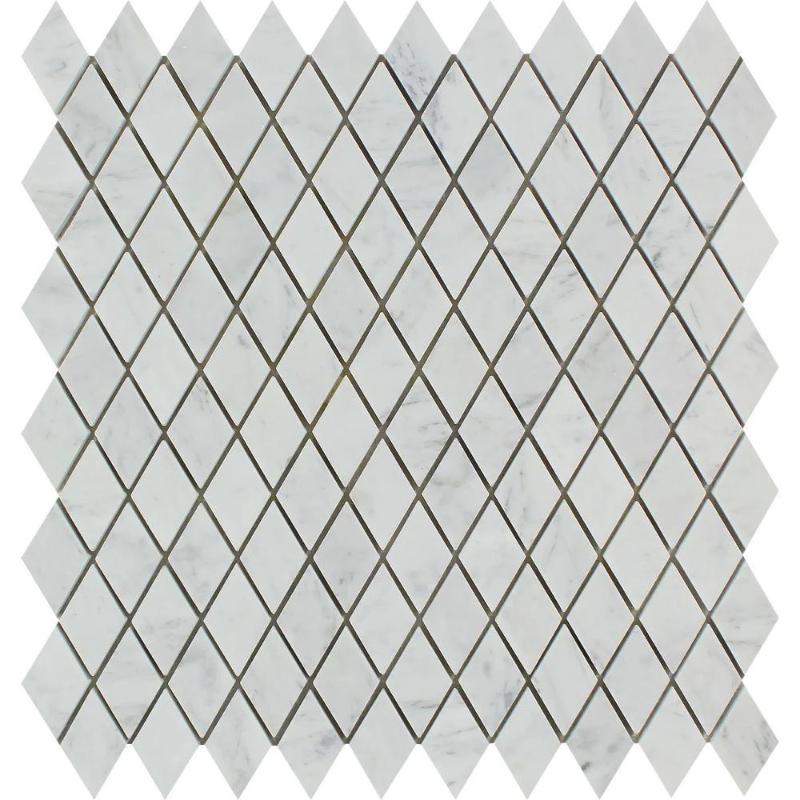 White Carrara Marble Polished 1x2 Diamond Mosaic Tile