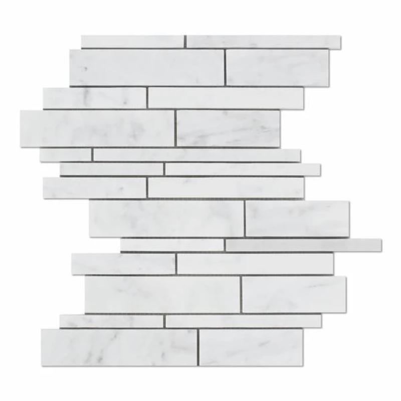 White Carrara Marble Random Insert Polished Mosaic Tile